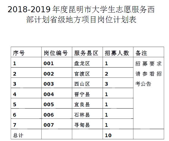 2018-2019年度昆明市大學(xué)生志愿服務(wù)西部計(jì)劃省級(jí)地方項(xiàng)目崗位計(jì)劃表