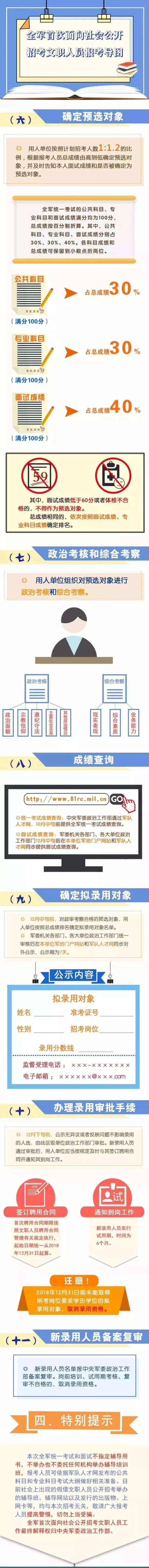 招聘統(tǒng)一考試和面試不指定輔導(dǎo)用書,不舉辦不委托任何機(jī)構(gòu)舉辦輔導(dǎo)班,報(bào)考人員可依據(jù)軍隊(duì)人才網(wǎng)公布的公共科目和專業(yè)科目考試大綱做好準(zhǔn)備。敬請(qǐng)廣大報(bào)考人員及時(shí)關(guān)注軍隊(duì)人才網(wǎng)(網(wǎng)址:http://www.81rc.mil.cn)和總隊(duì)微信公眾號(hào)(微信號(hào):PAP201781)發(fā)布的招聘信息,提高對(duì)各種以文職人員招考為目的的虛假信息的警惕,切勿上當(dāng)受騙。如有疑問(wèn),請(qǐng)與指定聯(lián)系人咨詢。