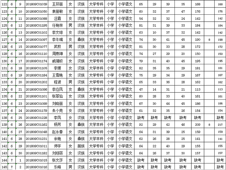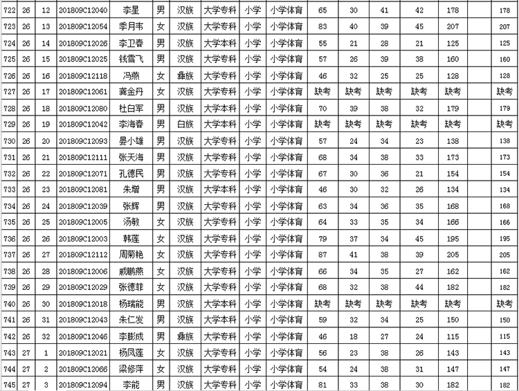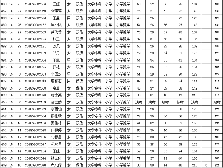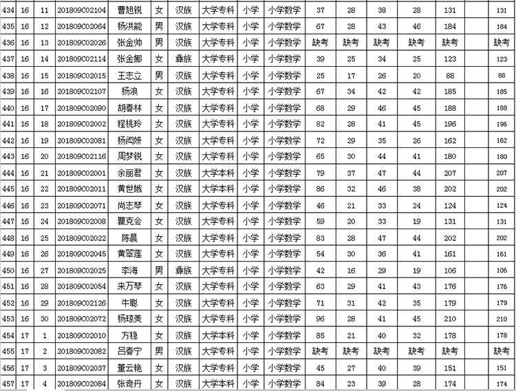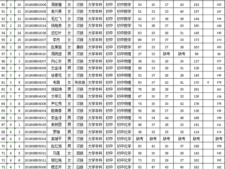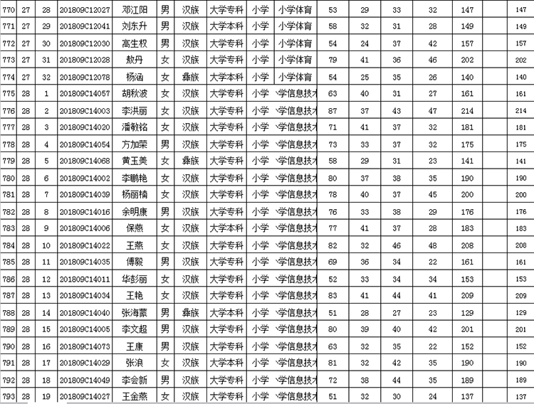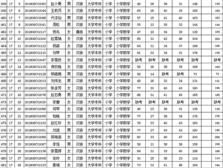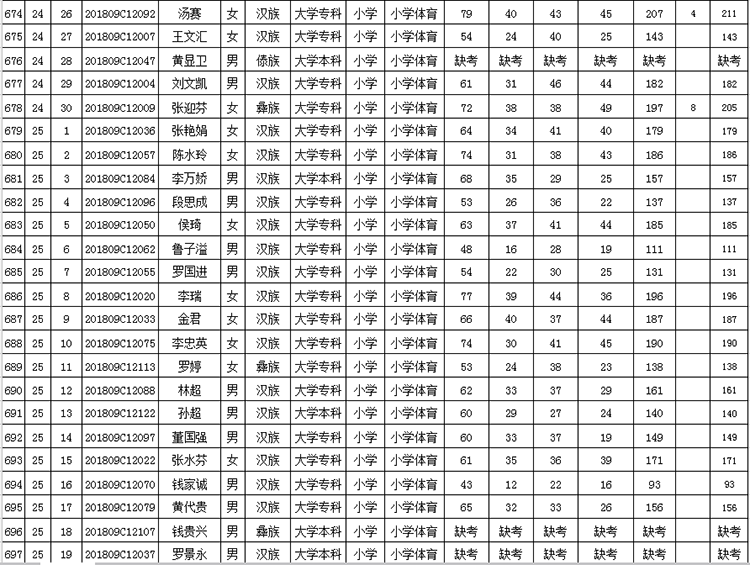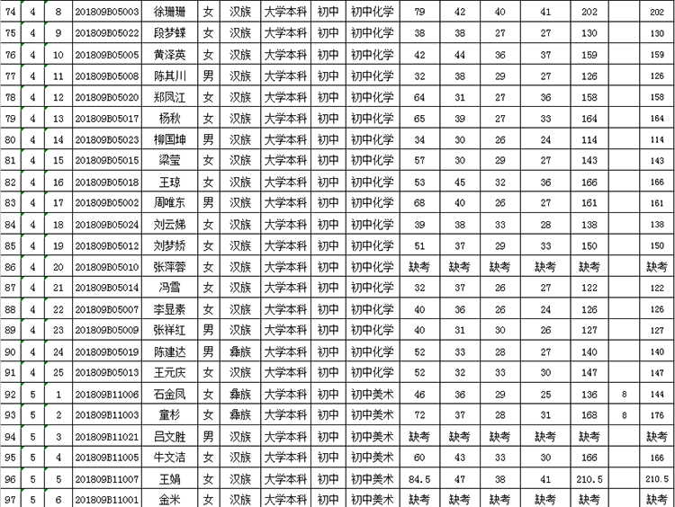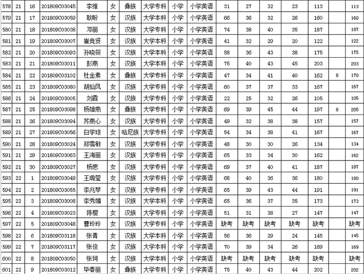 曲靖市羅平縣2018年公開(kāi)招聘教師成績(jī)公告
