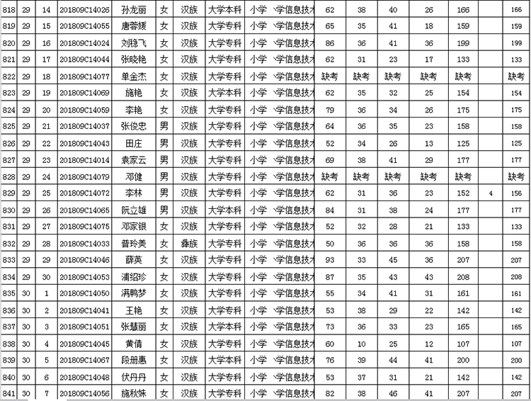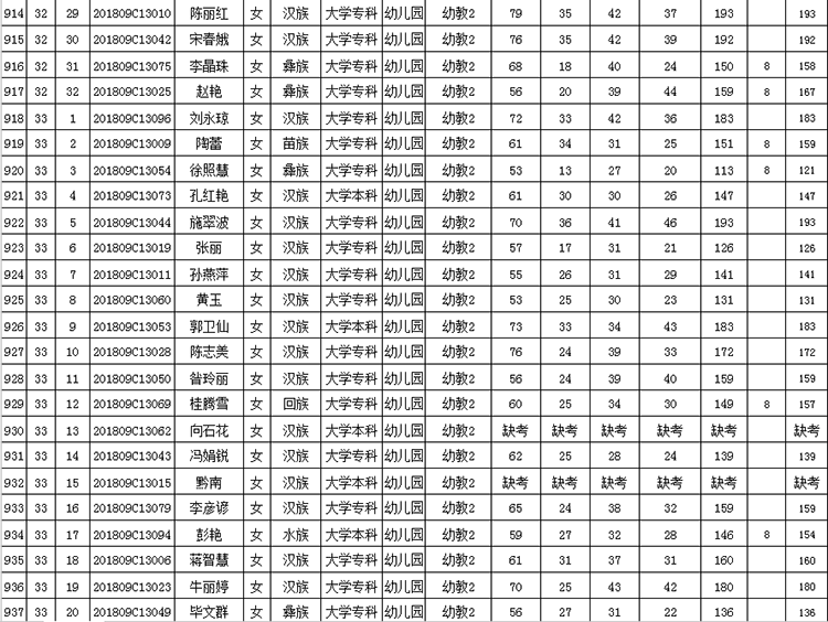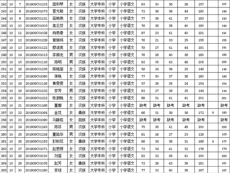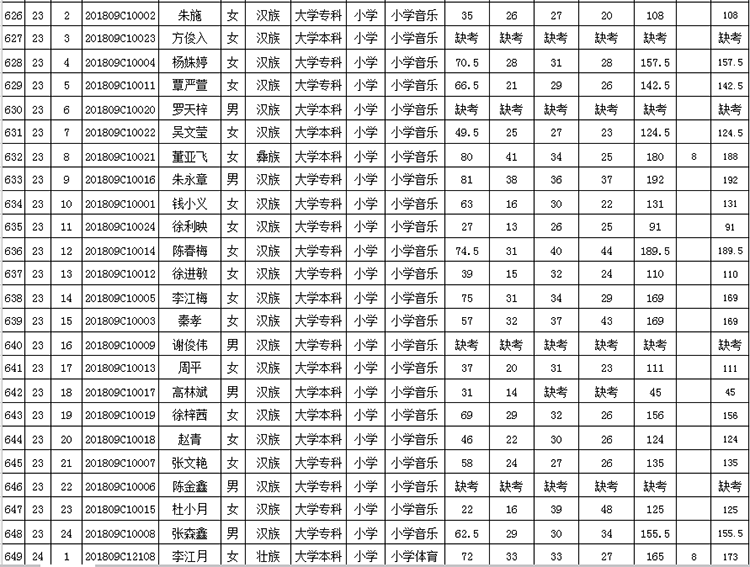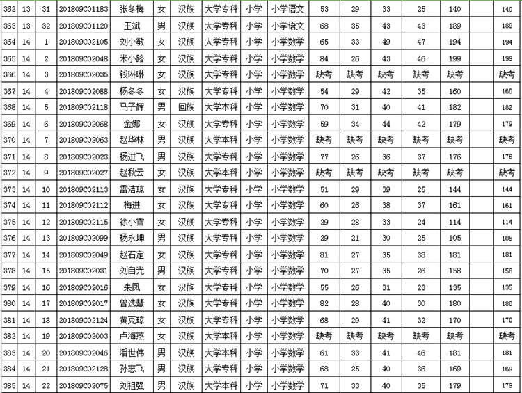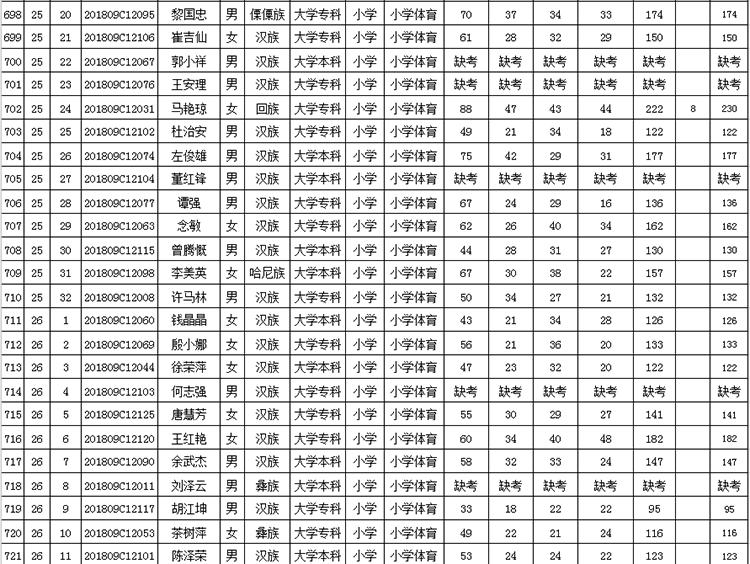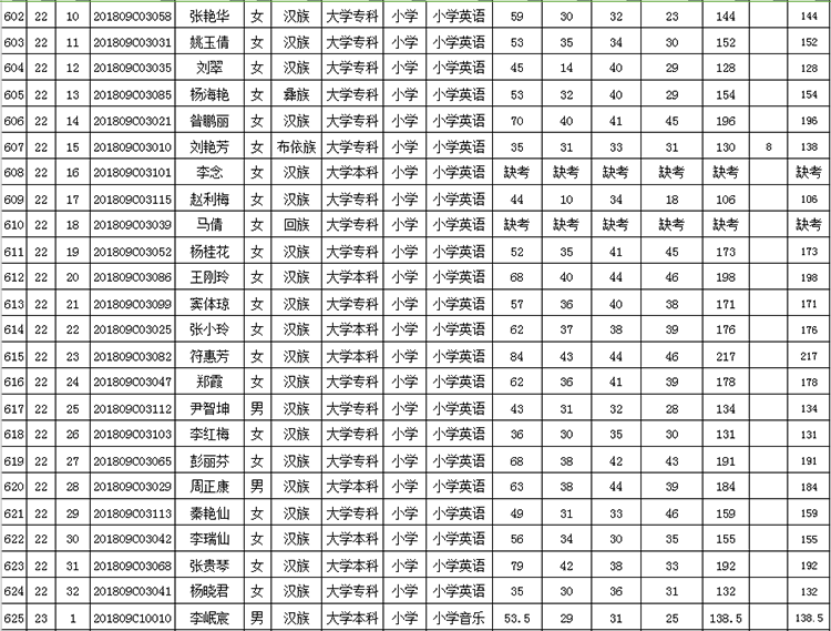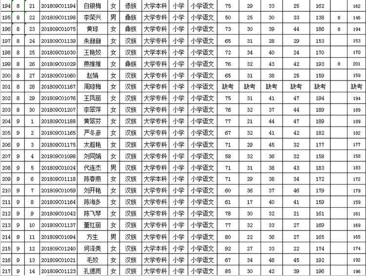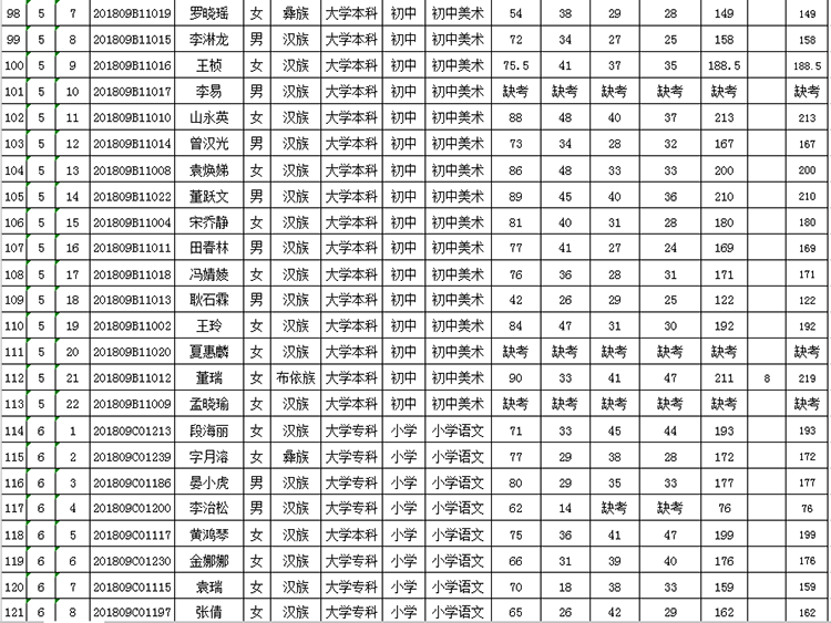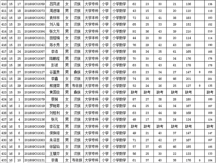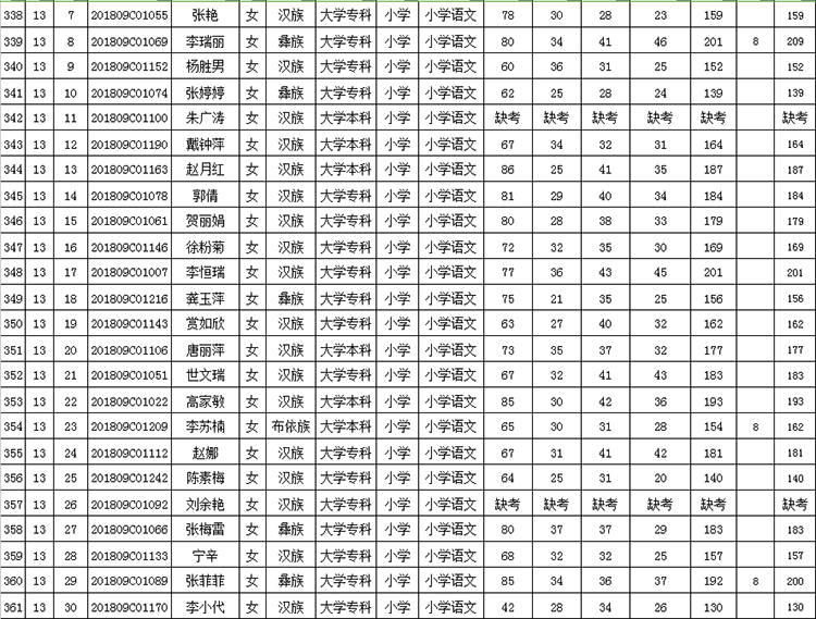 曲靖市羅平縣2018年公開(kāi)招聘教師成績(jī)公告