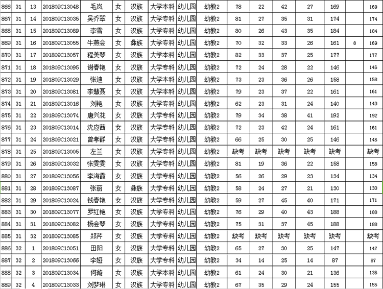 曲靖市馬龍區(qū)2018年招聘教師考試成績(jī)公告