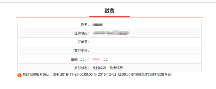 二、減免申請(qǐng)審核通過后,報(bào)名系統(tǒng)“支付狀態(tài)”欄會(huì)顯示“支付成功—免考試費(fèi)”提示(如圖示),已經(jīng)繳納報(bào)名費(fèi)的考生將由收費(fèi)平臺(tái)在確認(rèn)工作結(jié)束后進(jìn)行退費(fèi),還未繳費(fèi)的考生可不再繳費(fèi)。如果未顯示圖示界面的考生,建議先支付報(bào)名費(fèi),防止影響考試。