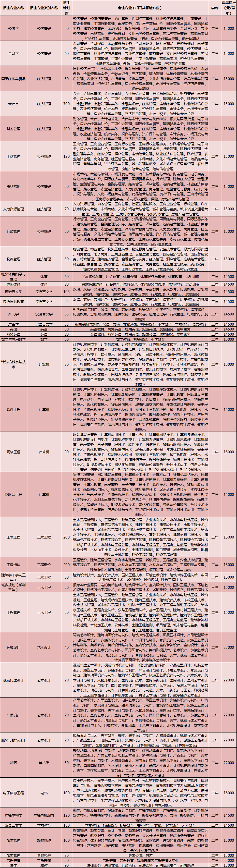 2019年云南大學(xué)滇池學(xué)院專升本招生計劃