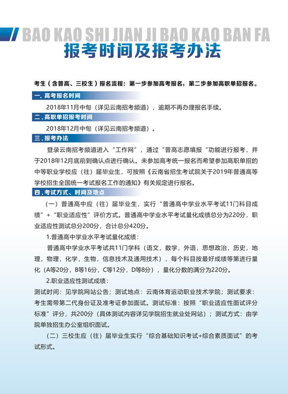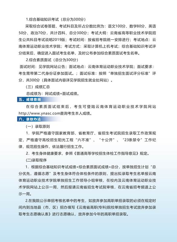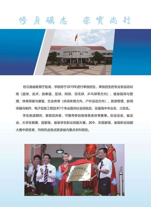 2019年云南體育運動職業(yè)技術學院高職單招招生簡章