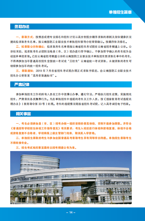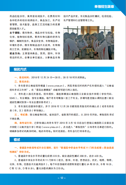 云南國防工業(yè)職業(yè)技術(shù)學(xué)院2019年單獨招生簡章