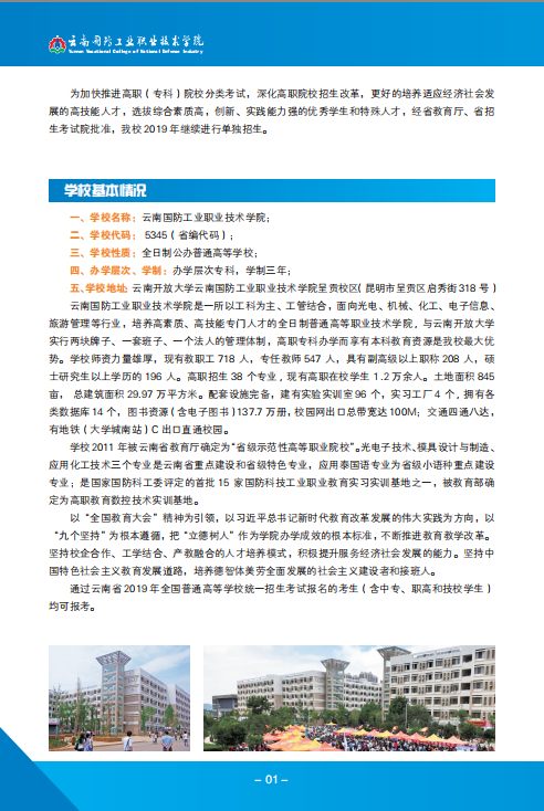云南國防工業(yè)職業(yè)技術(shù)學(xué)院2019年招生