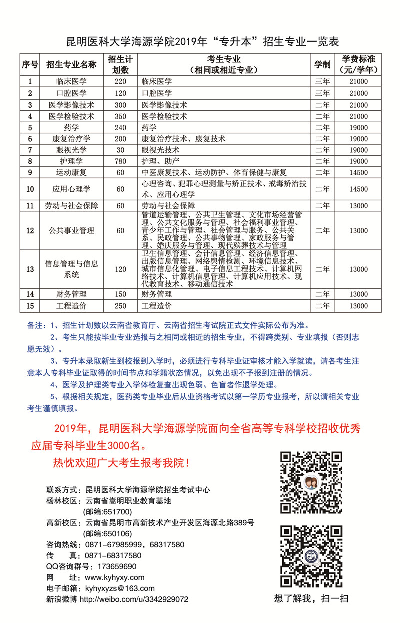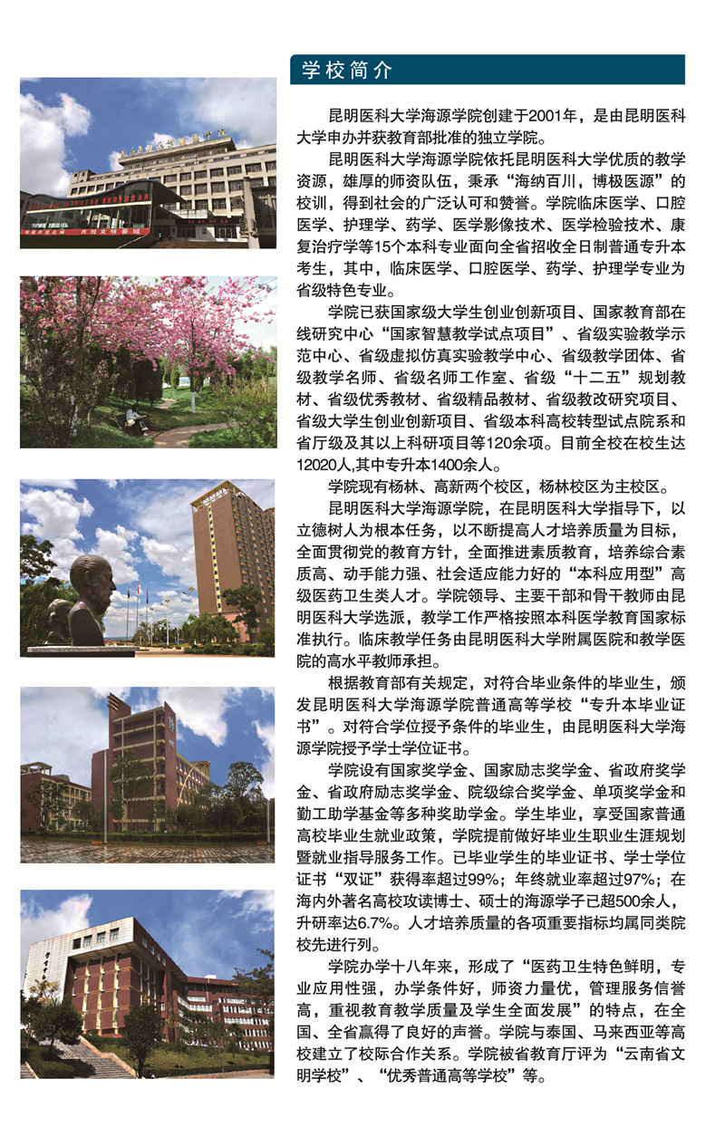 昆明醫(yī)科大學(xué)海源學(xué)院2019年專升本招生簡(jiǎn)章