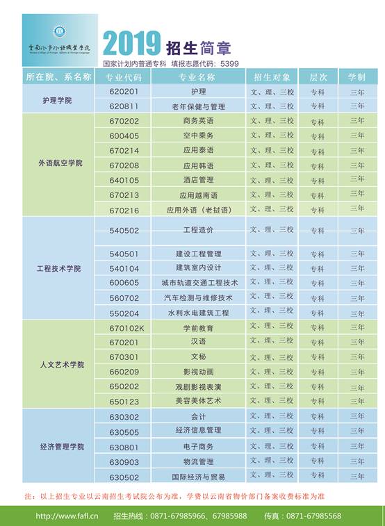 云南外事外語職業(yè)學(xué)院2020年招生簡章
