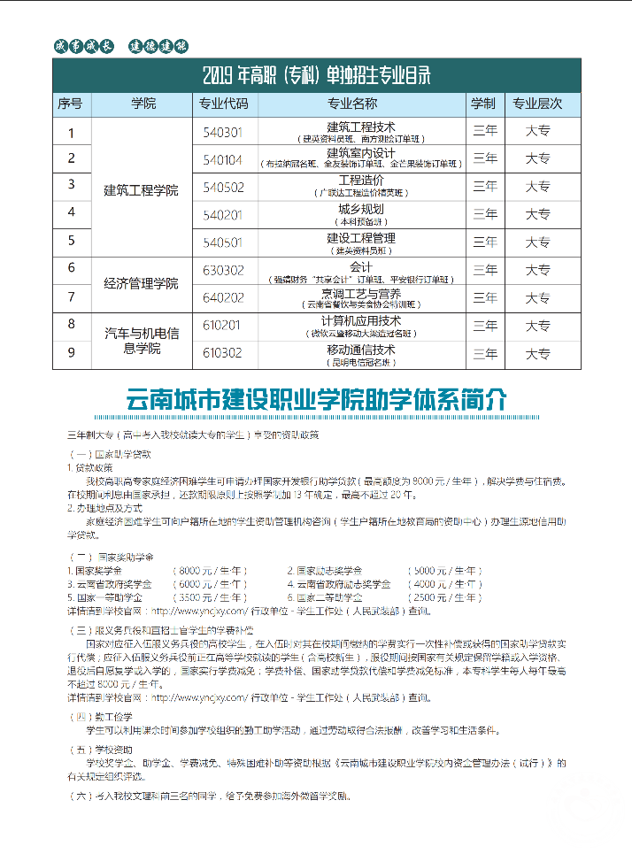 云南城市建設職業(yè)學院2019年單獨招生簡章