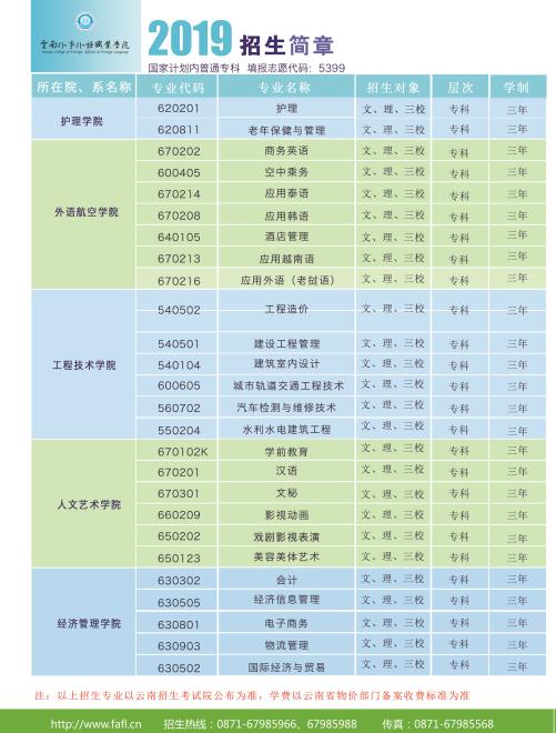 云南外事外語職業(yè)學(xué)院2019年招生簡(jiǎn)章
