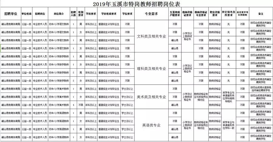 2019年峨山縣特崗教師招聘崗位數(shù)為義務(wù)教育階段中小學(xué)教師20人,詳見《2019年玉溪市特崗教師招聘崗位表》。