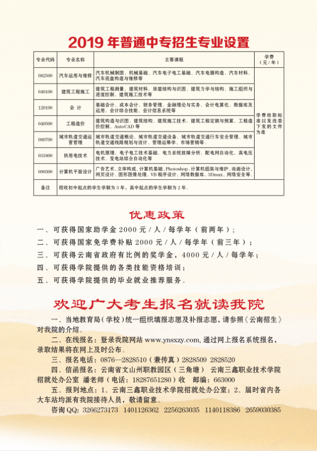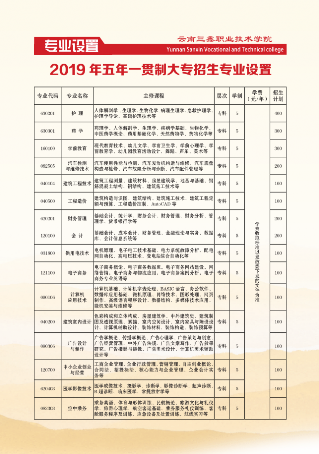 云南三鑫職業(yè)技術(shù)學(xué)院2019年五年制大專(zhuān)招生簡(jiǎn)章
