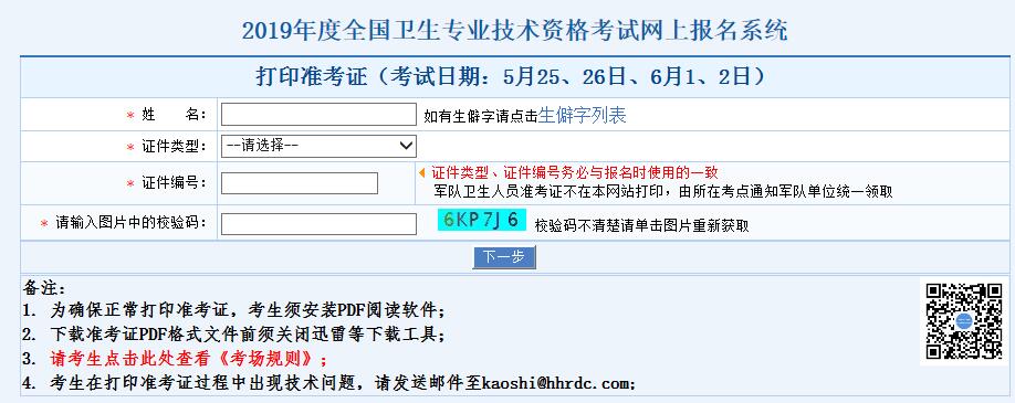2019年度全國衛(wèi)生專業(yè)技術(shù)資格考試準考證打印入口