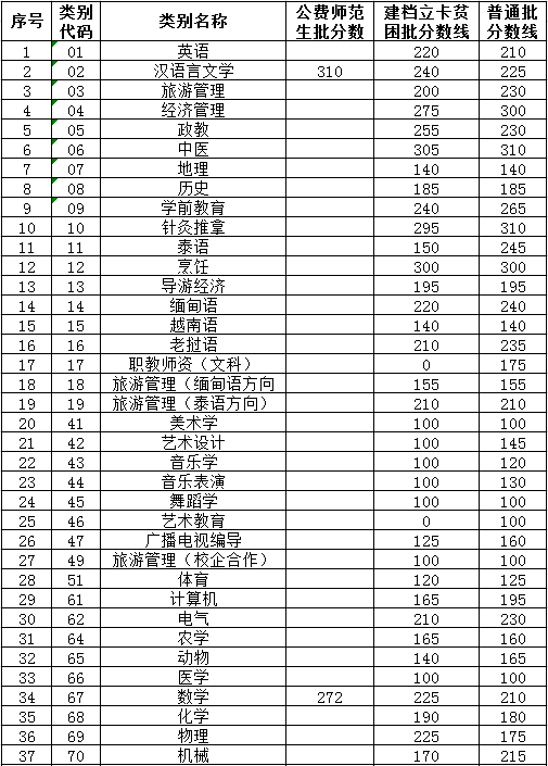 紅河學(xué)院2019年專升本建檔立卡批次征集志愿錄取名單