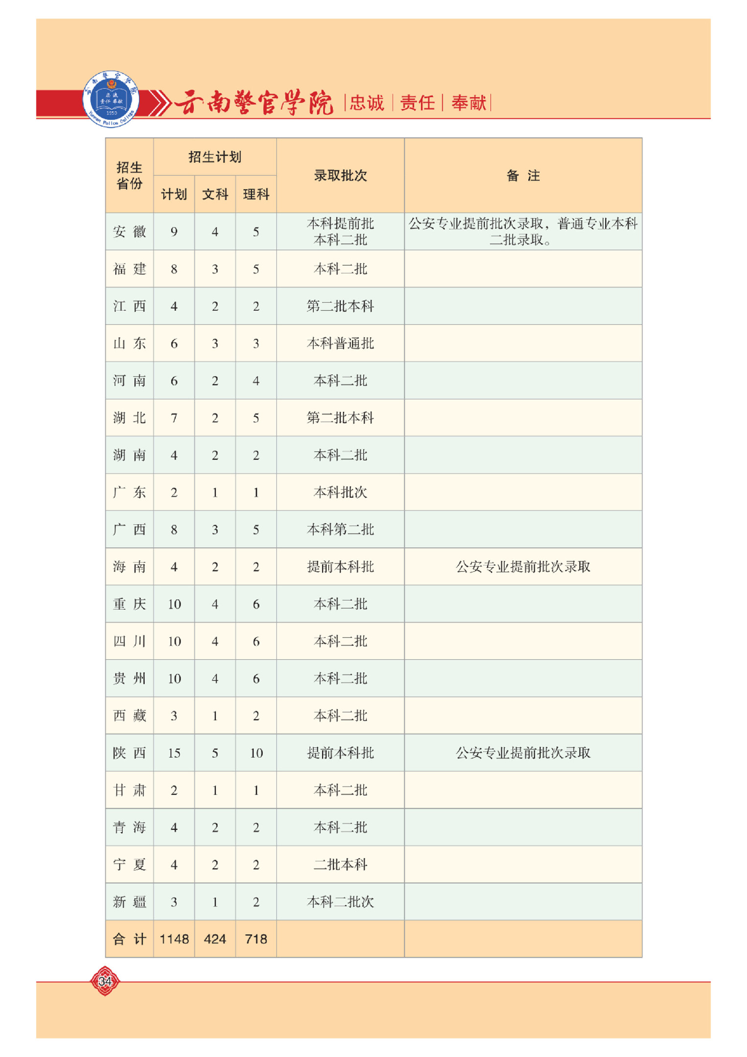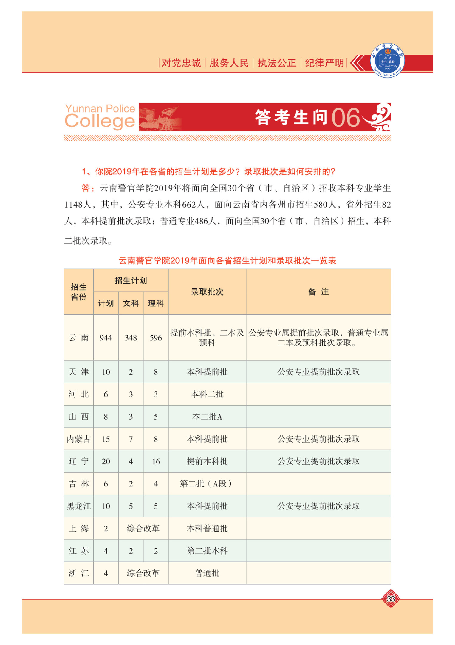 云南警官學(xué)院2019年公安專業(yè)省內(nèi)招生計劃一覽表