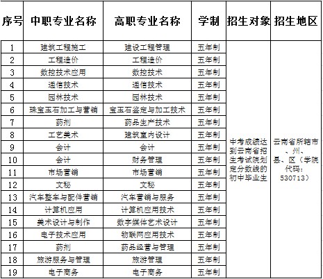云南科技信息職業(yè)學(xué)院2019年五年制大專招生簡章