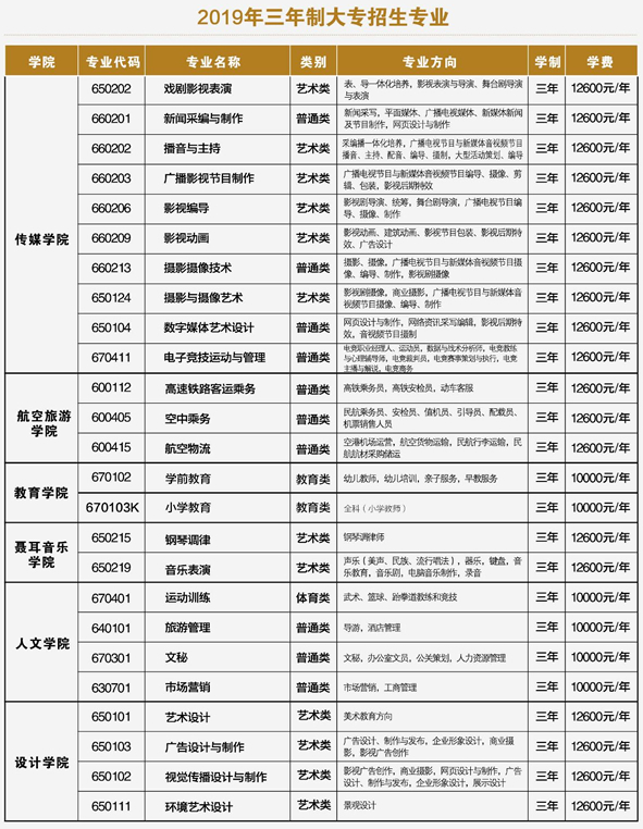 昆明藝術(shù)職業(yè)學(xué)院2019年三年制大專招生簡(jiǎn)章