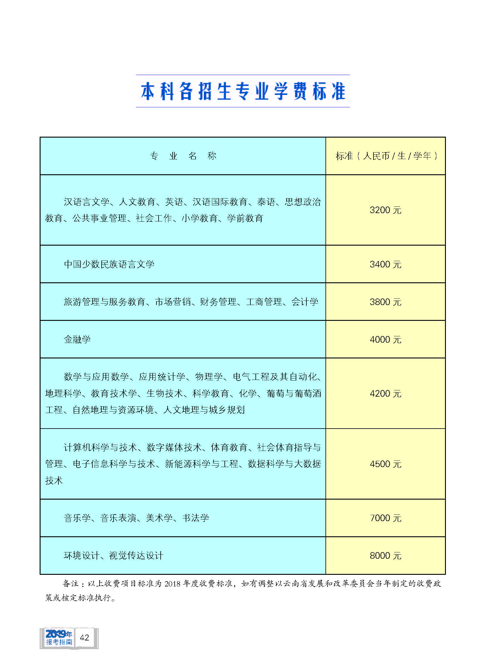 2019年楚雄師范學院本科各招生專業(yè)學費標準