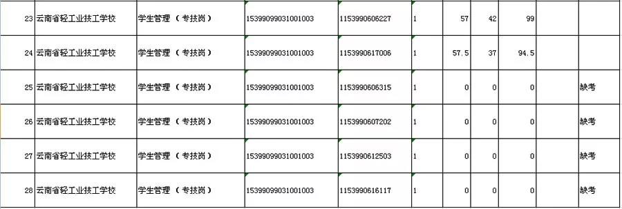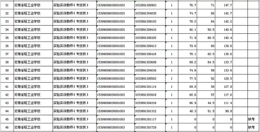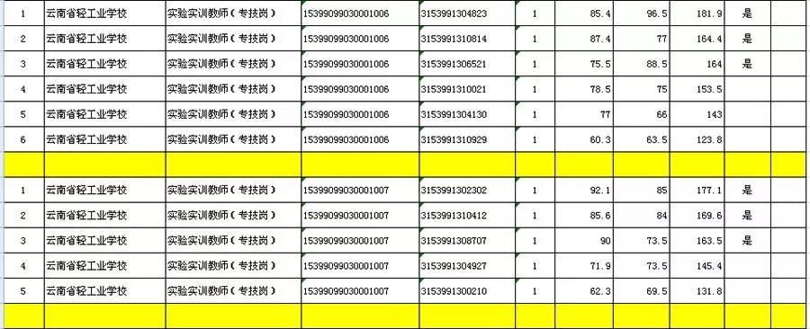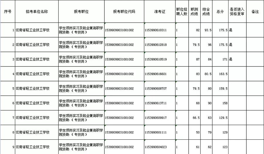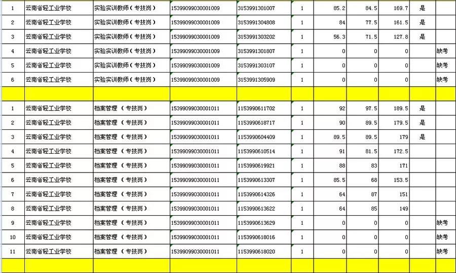 2.云南省輕工業(yè)技工學(xué)校2019年事業(yè)單位公開招聘工作人員考試筆試成績及進(jìn)入資格復(fù)審人員名單