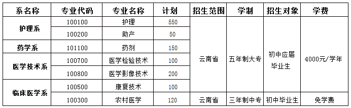 注:最終執(zhí)行的招生計劃,以云南省教育廳正式公布為準(zhǔn)。(五年制大專招生代碼:530750;中專招生代碼:530518)