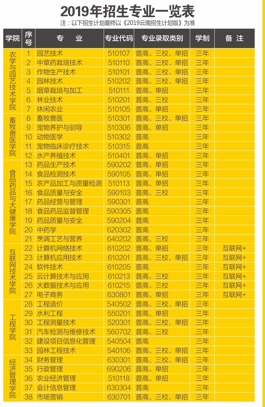 云南農(nóng)業(yè)職業(yè)技術(shù)學(xué)院2019年高職??普猩鷮I(yè)