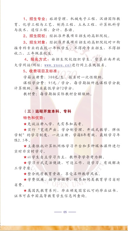 2020年春季云南開(kāi)放大學(xué)招生簡(jiǎn)章