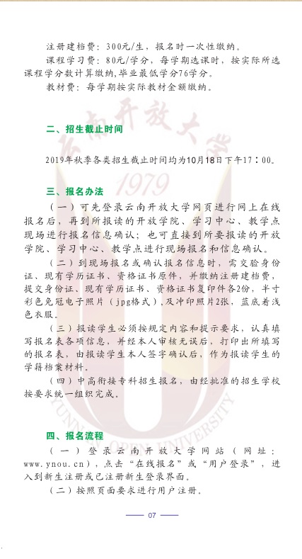 2019秋季云南開(kāi)放大學(xué)招生簡(jiǎn)章