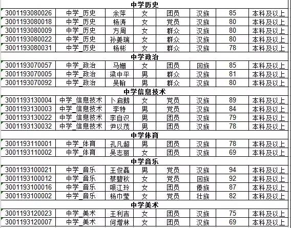 2.2019年隆陽區(qū)特崗教師招聘資格復審人員名