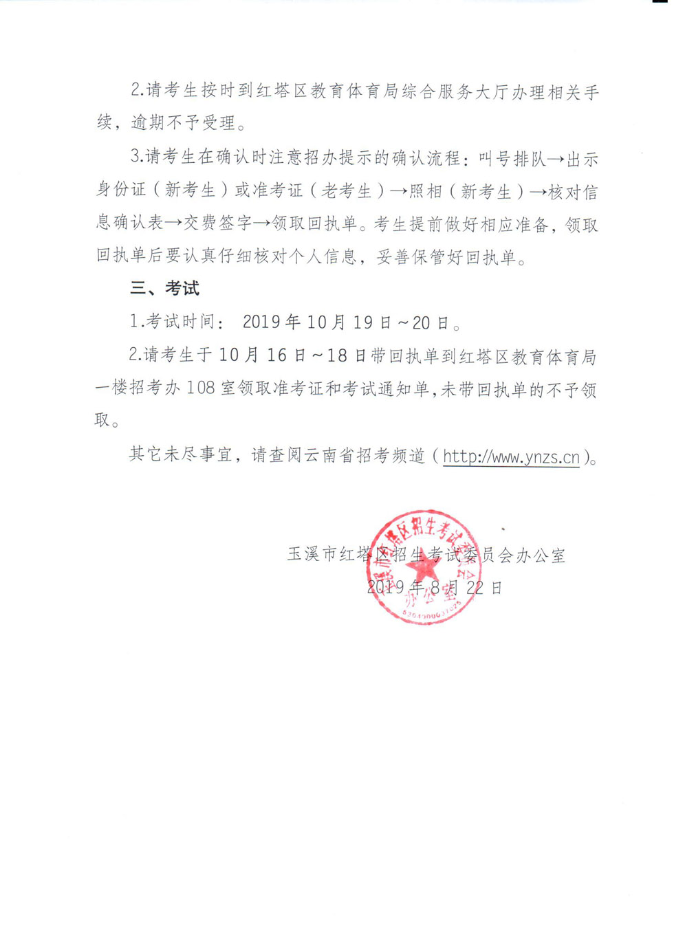 玉溪市紅塔區(qū)2019年10月第82次自學(xué)考試報(bào)名安排通告