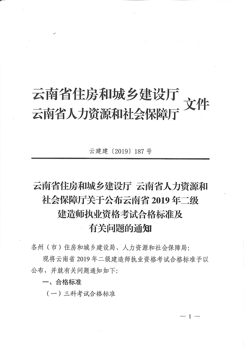 關(guān)于公布云南省2019年二級建造師執(zhí)業(yè)資格考試合格標準及有關(guān)問題的通知