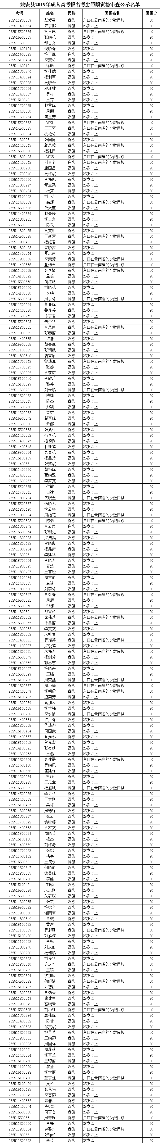 2.姚安縣2019年成人高考報(bào)名考生照顧資格審查公示名單