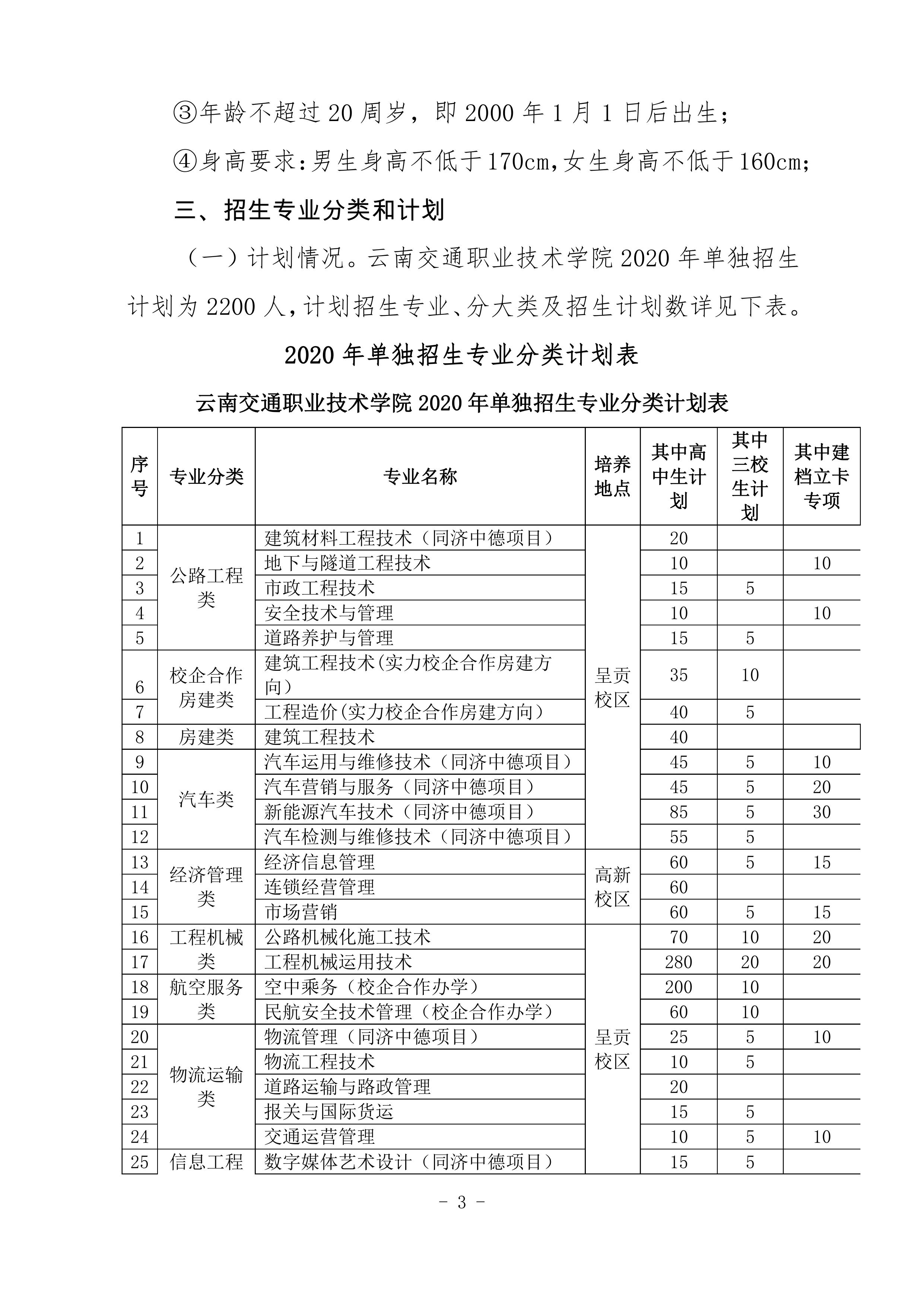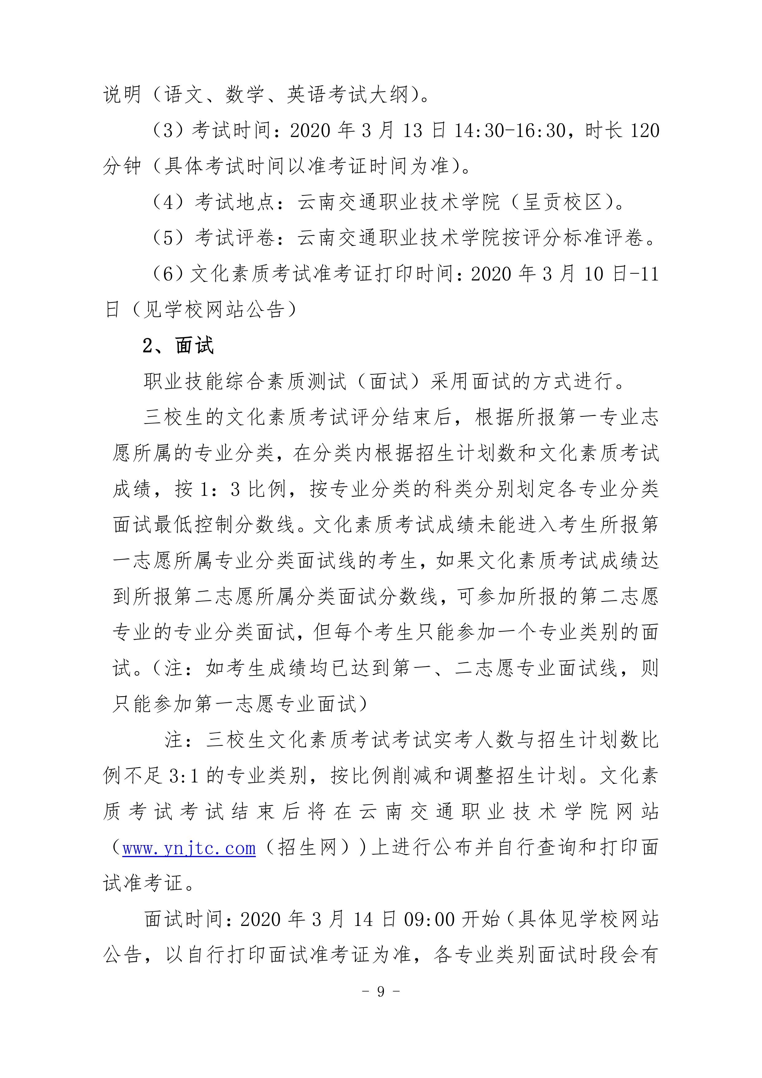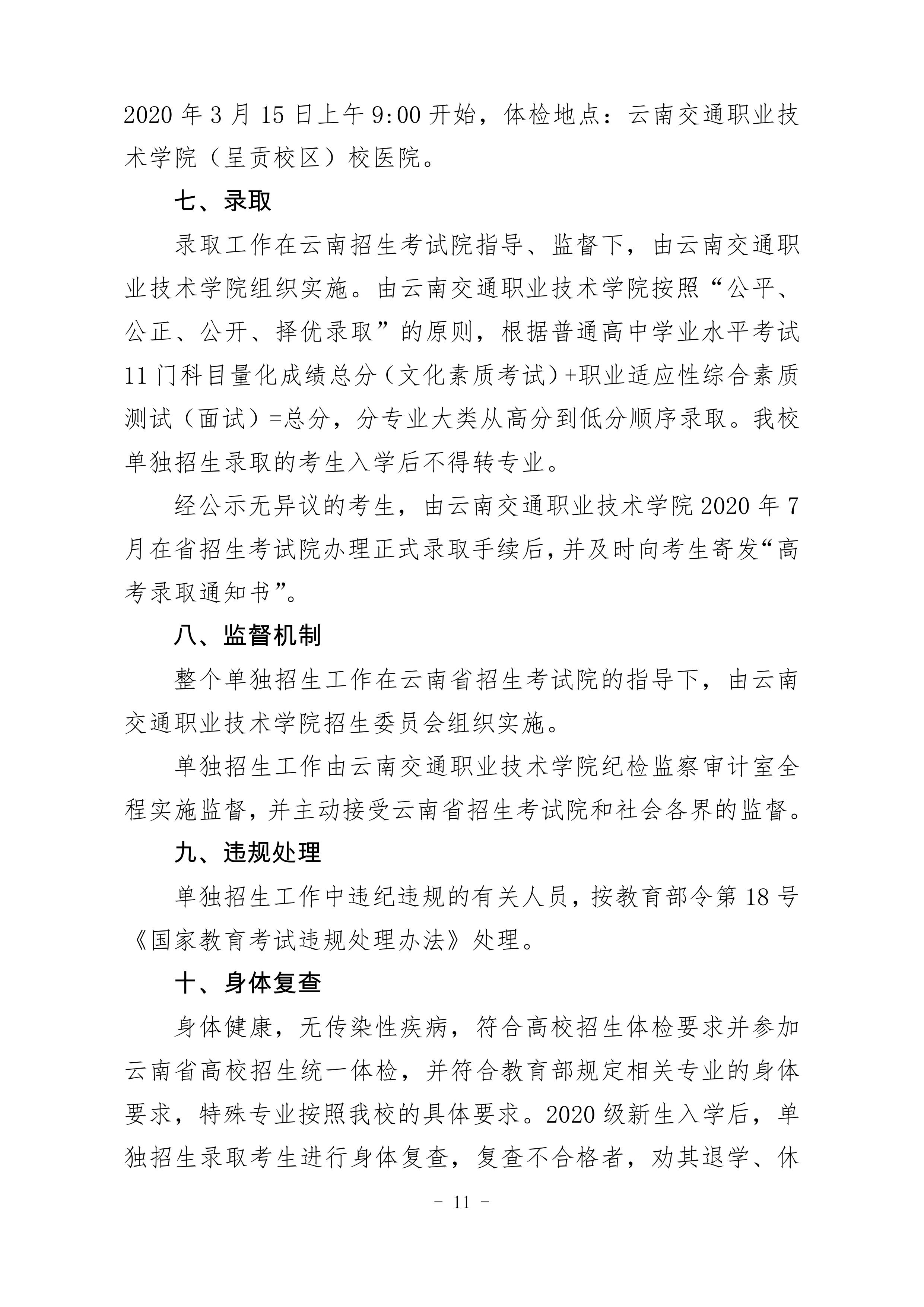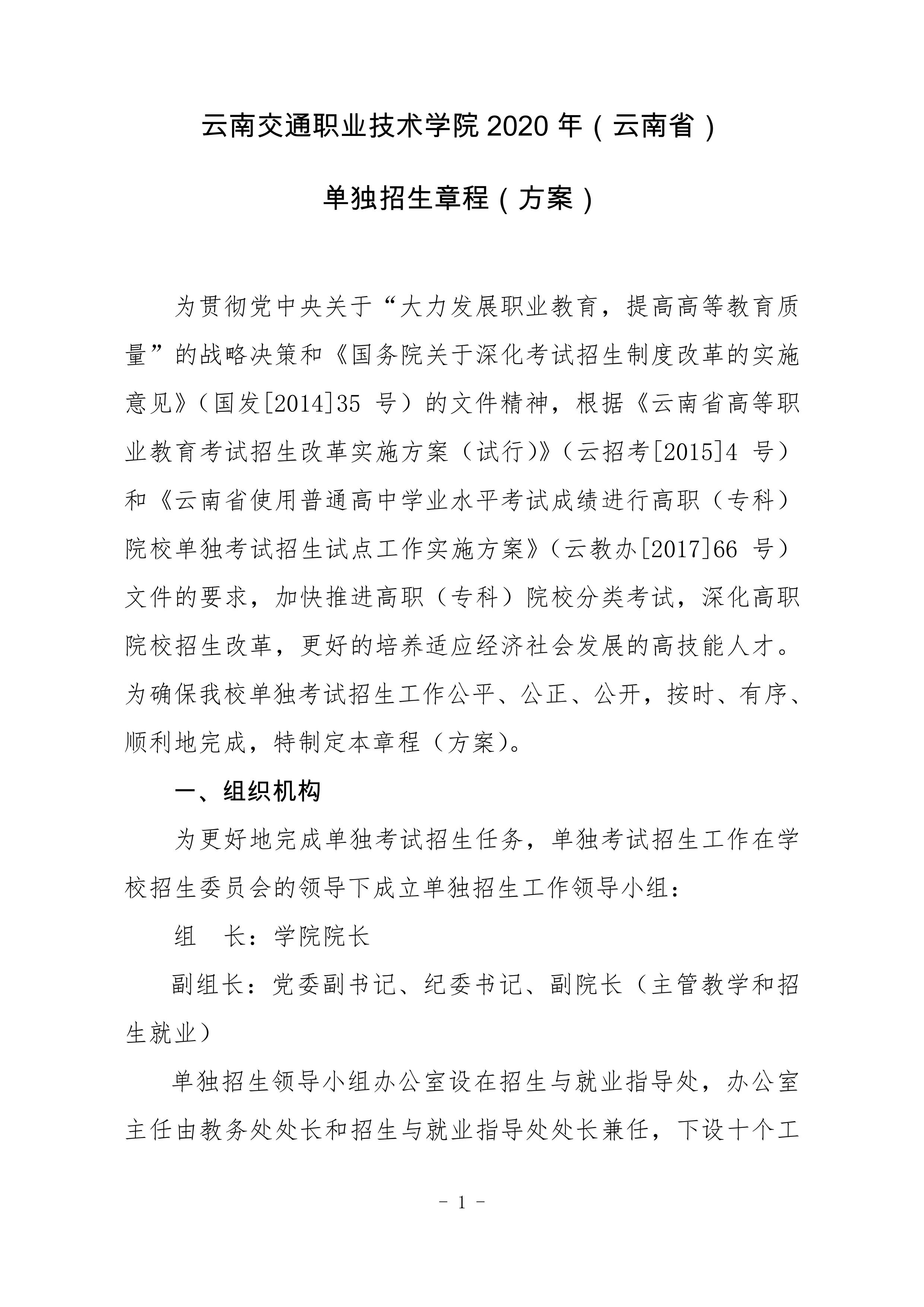 云南交通職業(yè)技術(shù)學(xué)院2020年單獨招生單程