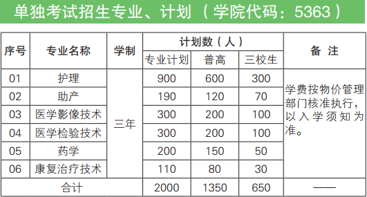 2020年單獨(dú)考試招生專業(yè)、計(jì)劃