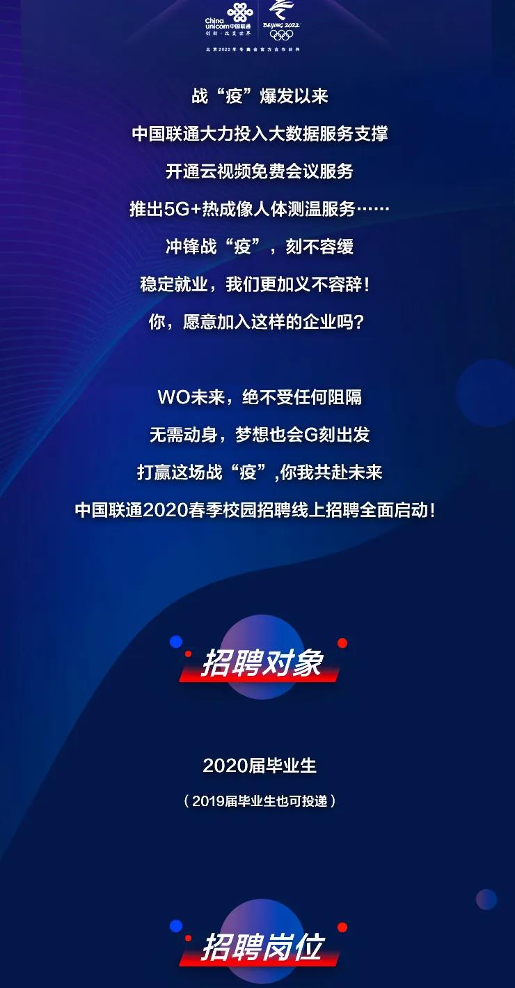 中國聯(lián)通2020線上春季校園招聘正式啟動