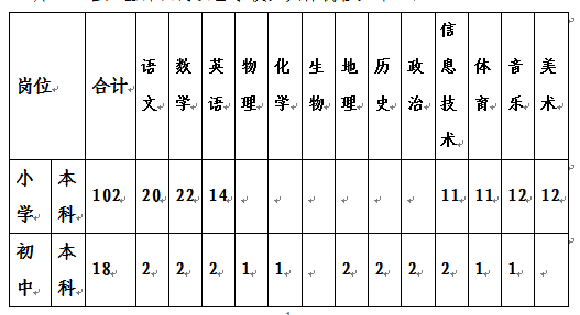 | 崗位數(shù) | 中學(xué) | 小學(xué) | 學(xué)歷 | 崗位數(shù) | 中學(xué) | 小學(xué) | 學(xué)歷 | ||