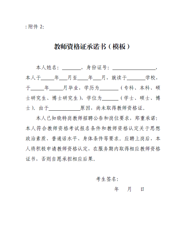 附件2:教師資格證書承諾書(模板)