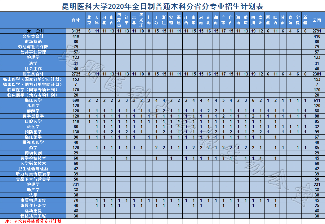 昆明醫(yī)科大學(xué)2020年本科招生計(jì)劃