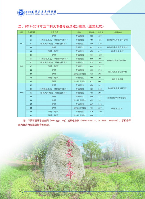 曲靖醫(yī)學(xué)高等??茖W(xué)校2017-2019年五年制大專各專業(yè)錄取分數(shù)線