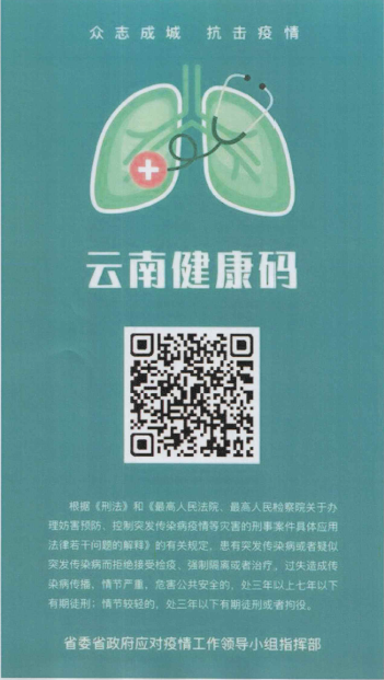 3、進(jìn)入考場(chǎng)前,考生須配合進(jìn)行體溫測(cè)量,并出示“云南健康碼”登記記錄(電子版、彩色紙質(zhì)版均可)。