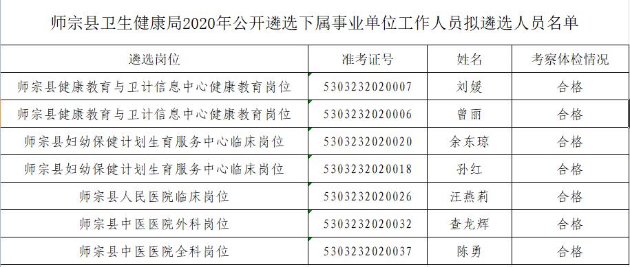附件:師宗縣衛(wèi)生健康局2020年公開遴選下屬事業(yè)單位工作人員擬遴選人員名單