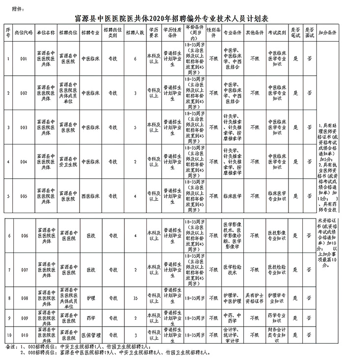 詳見附件《富源縣中醫(yī)醫(yī)院醫(yī)共體2020年招聘編外專業(yè)技術(shù)人員計(jì)劃表》。