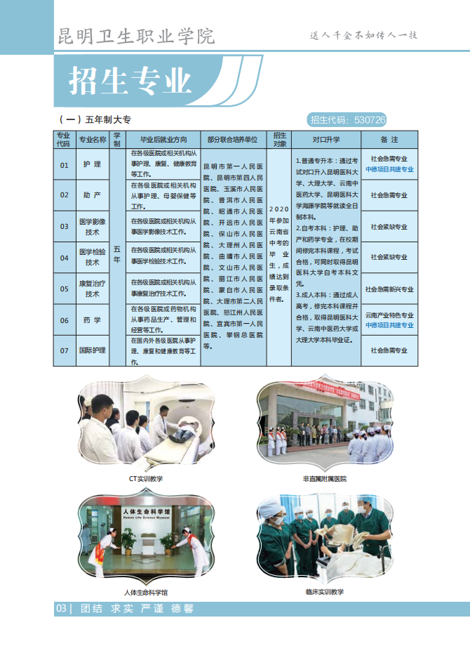 昆明衛(wèi)生職業(yè)學(xué)院2020年五年制招生簡(jiǎn)章
