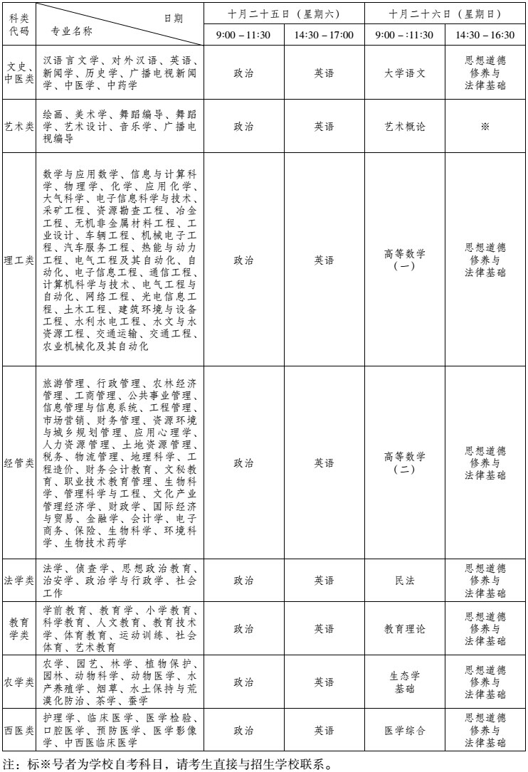專(zhuān)科起點(diǎn)升本科考試每科全國(guó)統(tǒng)考科目考試時(shí)間為 150分鐘,加試科目考試時(shí)間為120分鐘,各科滿(mǎn)分為150分。
