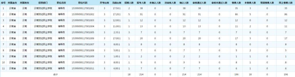 云南財(cái)經(jīng)職業(yè)學(xué)院2020年事業(yè)單位第二批公開招聘工作人員報(bào)名情況統(tǒng)計(jì)(截止9月29日24:00)